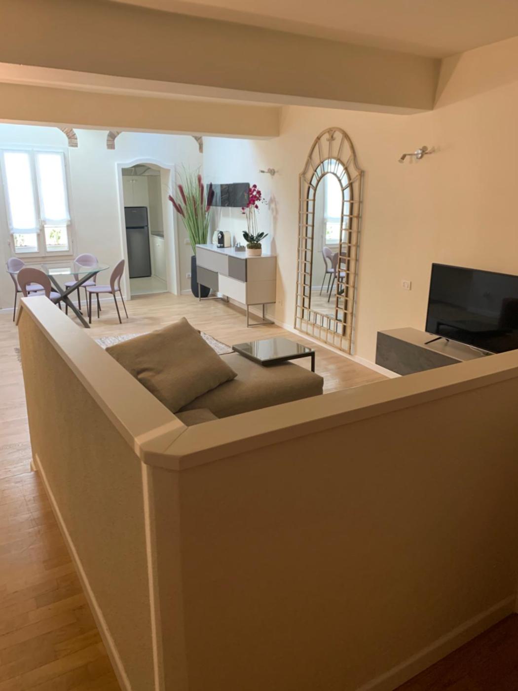 One-Bedroom Apartment. Featuring a private entrance, this air-conditioned apartment comprises 1 living room, 1 separate bedroom and 1 bathroom with a shower and a bidet. The fully equipped kitchen features a stovetop, a refrigerator, a dishwasher and kitchenware. This apartment has a washing machine, flat-screen TV, ancourtyard view, as well as chocolate for guests. The unit offers 3 beds.