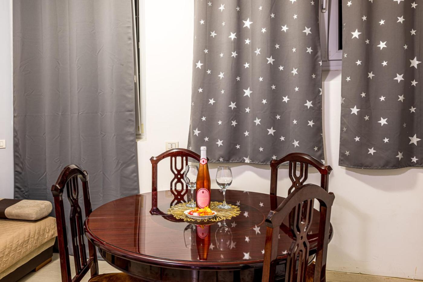 Deluxe One-Bedroom Apartment. Guests will have a special experience as the apartment offers a hot tub. The air-conditioned apartment features 1 bedroom and 1 bathroom with a bath and a bidet. In the fully equipped kitchen, guests will find a stovetop, a refrigerator, kitchenware and a microwave. The apartment provides a flat-screen TV with cable channels, soundproof walls, a tea and coffee maker, a seating area as well as ancourtyard view. The unit offers 2 beds.